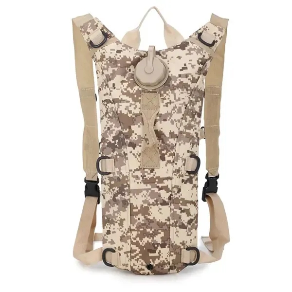 Stay hydrated on your outdoor adventures with our hydration backpack. Waterproof nylon, wear-resistant, and shock-absorbing, it's perfect for hiking, cycling, and camping. The stylish camouflage design blends fashion with functionality, ideal for various environments. Featuring high-quality buckles and convenient shoulder strap holders for glasses, this backpack is your reliable companion for conquering new journeys. Available in khaki, green, and camouflage, measuring 17.52" x 6.69" x 1.57". Upgrade your outdoor experience with this durable and practical backpack that ensures your prepared for any challenge nature throws your way.