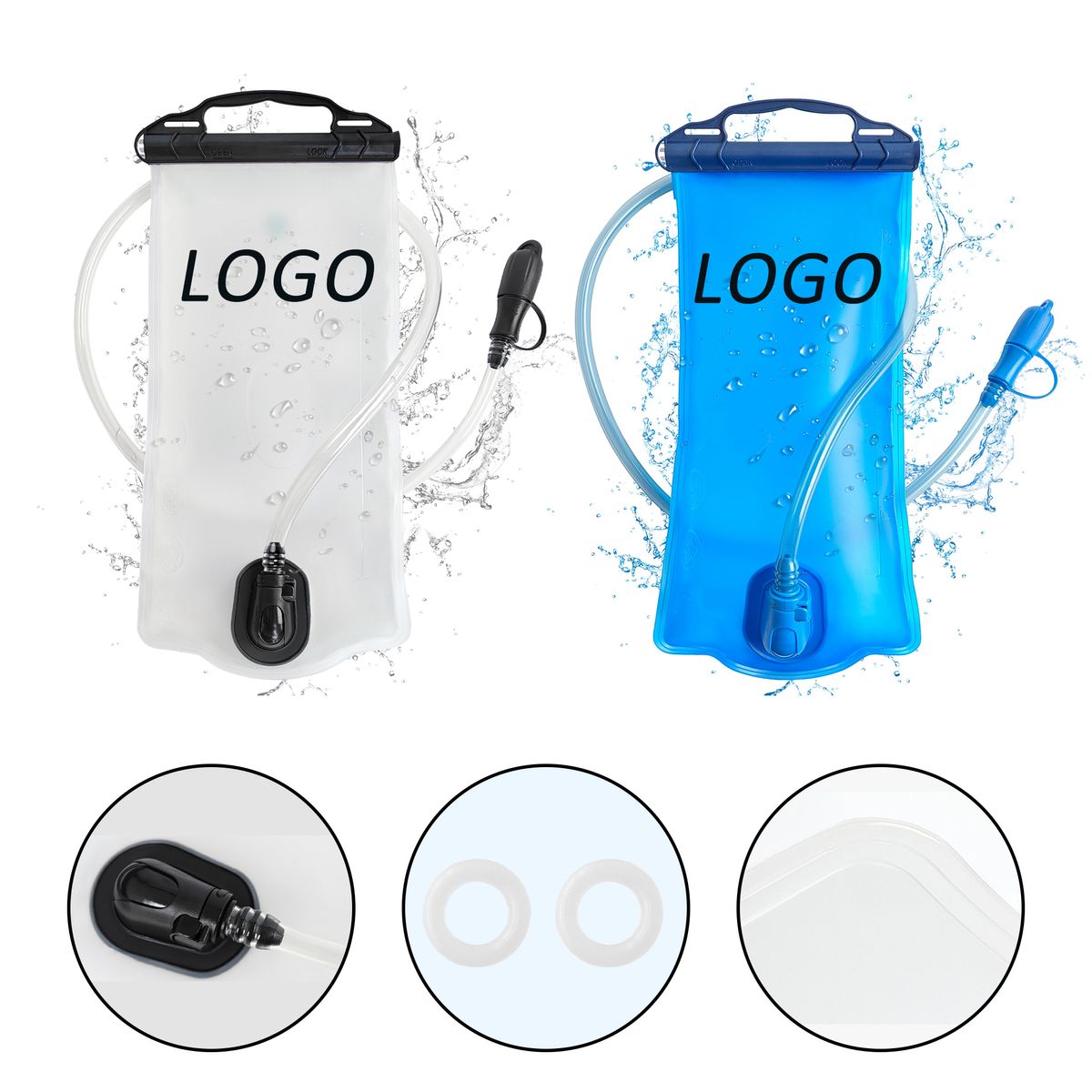Stay hydrated with this practical and multi-functional hydration system. This 2L water bag is made of PVC. It features double sealing technology to prevent leakage. It features an easy-to-use on/off valve and a soft-bite valve, allowing for full control of water flow, and includes a dust cover for additional protection. The wide-mouthed design allows you to add ice cubes, keeping your drink cold for a longer time. It can also effectively lower the user's temperature. It is also convenient to clean. Suitable for outdoor places such as hiking, running, camping, etc. Customize by adding your organization or company logo or message. Provides rush service. Get a free quote now!