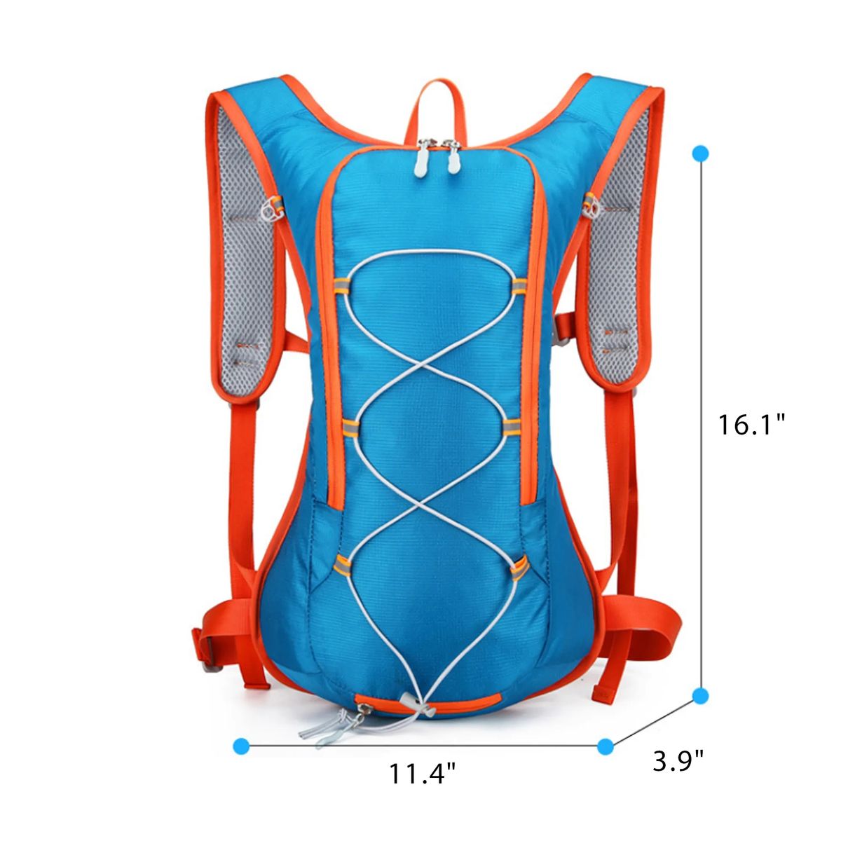 Additional InformationNylon backpack for cycling and hiking with hydration compartment. Size: 11.4" x 3.9" x 16.1". Customizable logo.